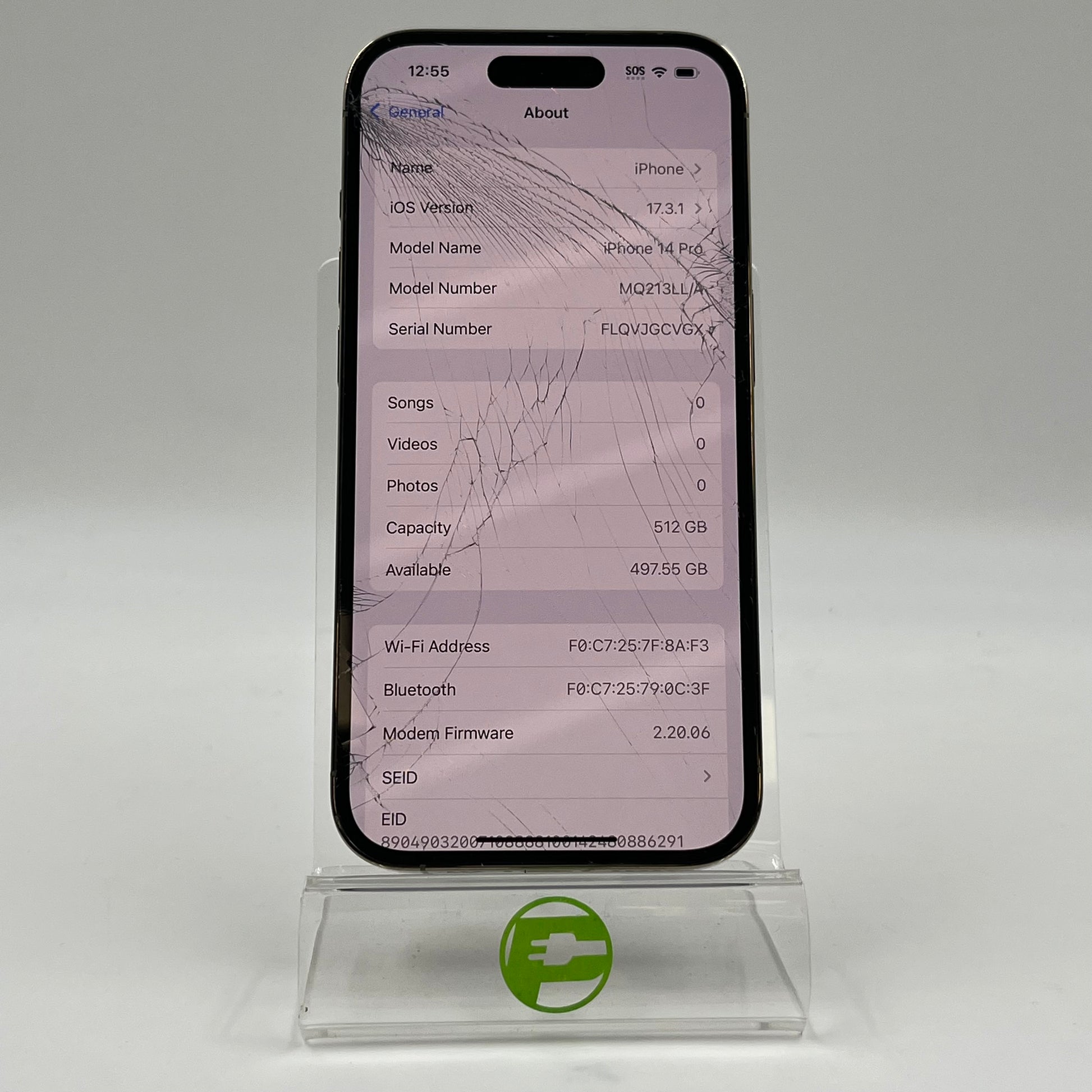 Broken Unlocked Apple iPhone 14 Pro 512GB 17.3.1 MQ213LL/A Cracked