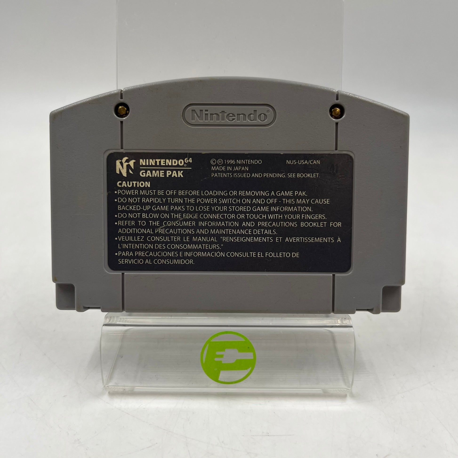 This cartridge casing/body is in good condition with some light wear from use. The label on this cartridge is in good condition. There is some light wear that may include small scuffs or indents, but the label is fully in-tact. The connectors/pins are in fair shape with some noticeable wear from use. This can be seen in a shine from ejecting, or light discoloration from age. Please view our close up photos, as these are taken of the actual item being offered for sale.